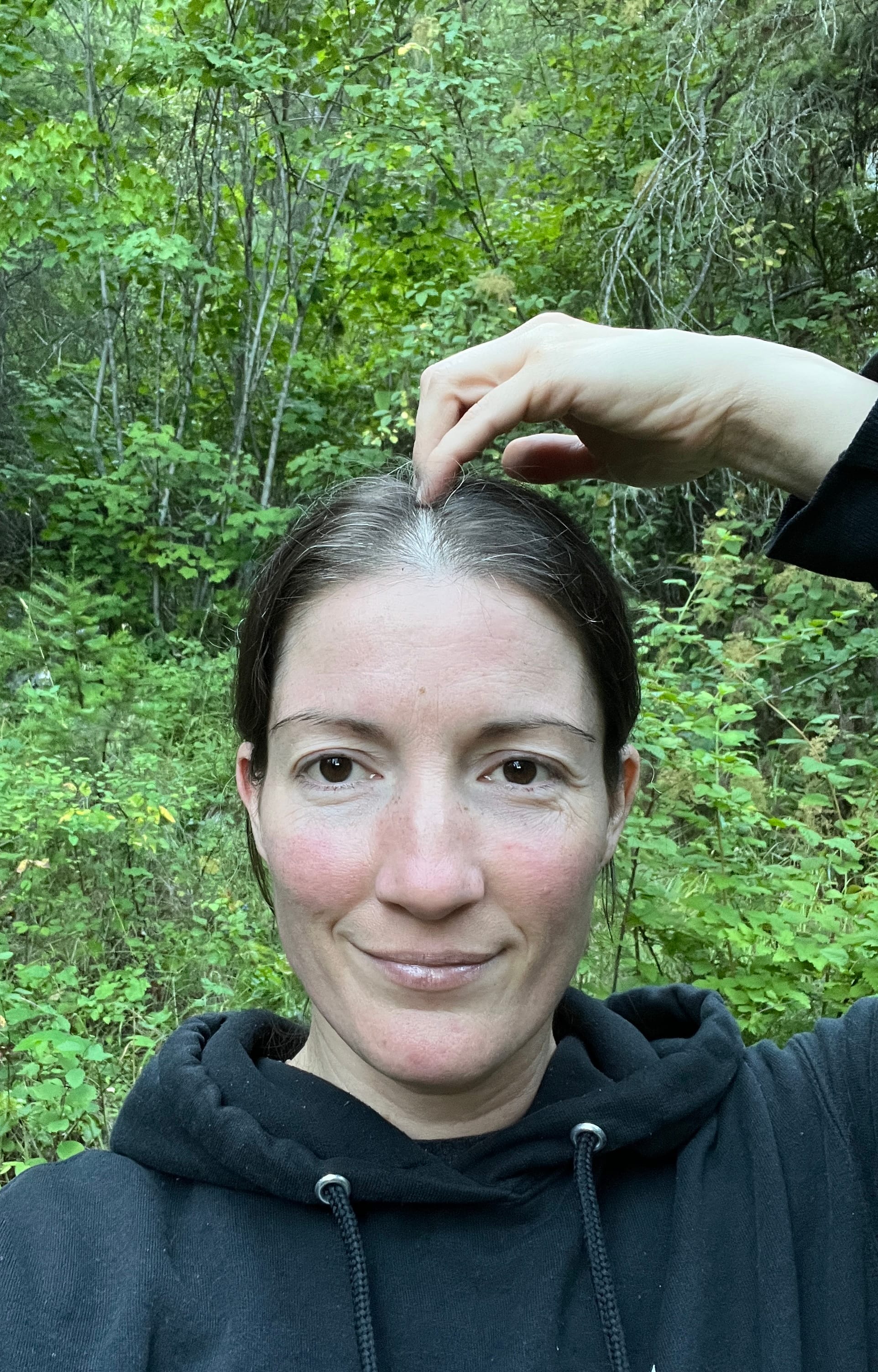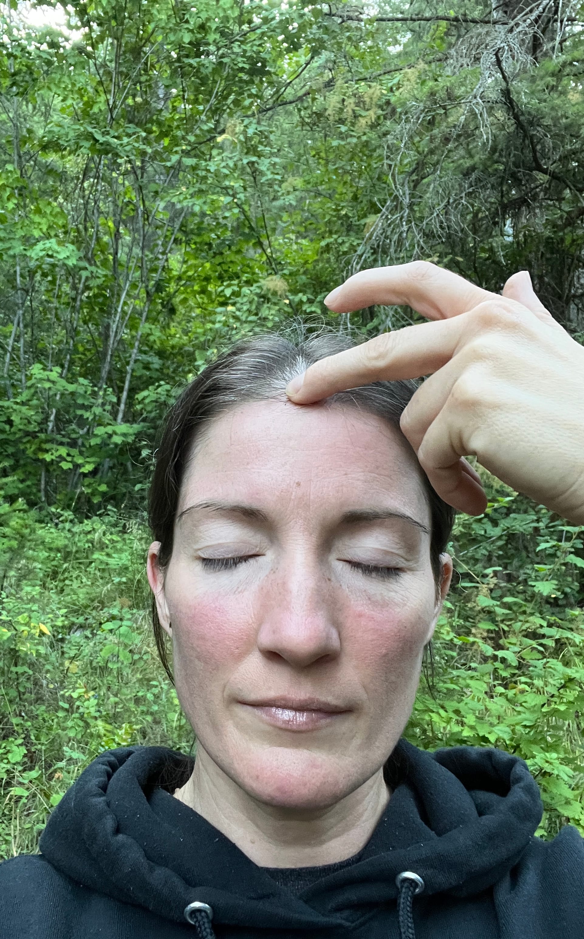 - Simanta Marma - located along the top ridge of the skull 4 finger widths long (notice all four of my fingers are placed).